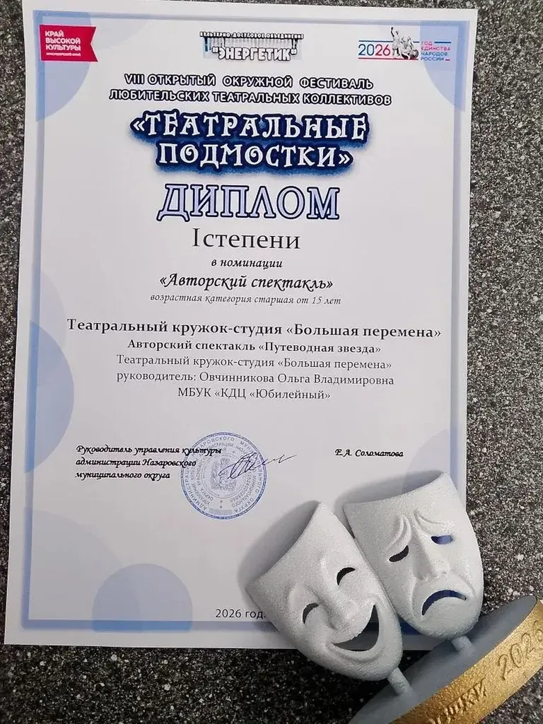 Поздравляем наш талантливый театральный коллектив и его руководителя Ольгу Владимировну с блестящей победой и желаем новых творческих успехов!